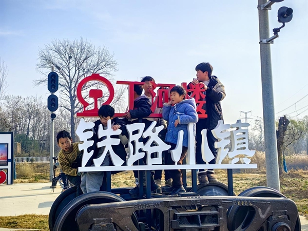 漫步丁河樓村,村里的主要道路以“京廣路”“隴海路”等鐵路元素命名,京廣路上有6幅鐵路主題文化的墻繪,村南邊有2個鐵路小鎮主題的文化廣場,孩子們在廣場扎堆兒玩耍。