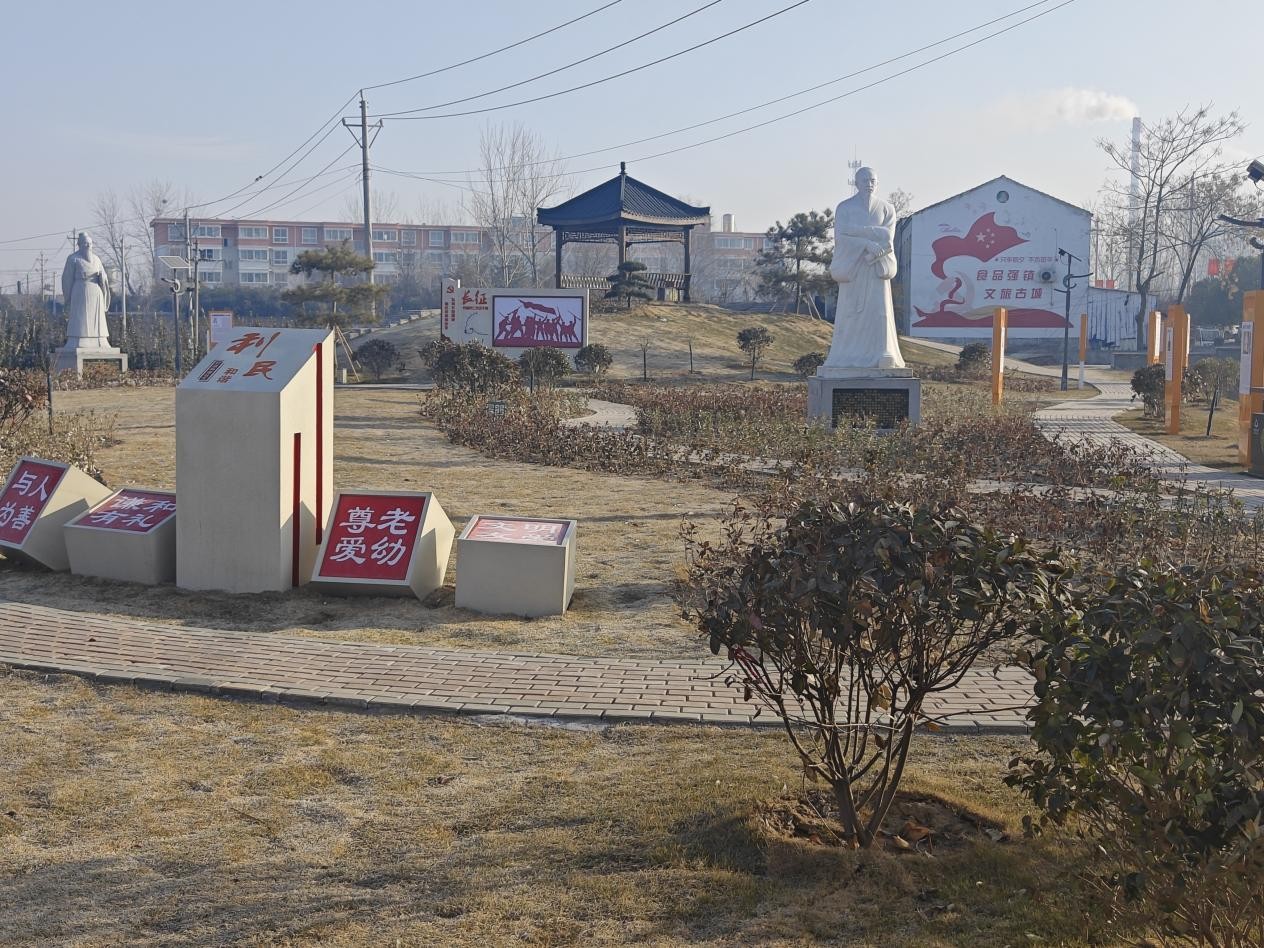 新春伊始,河南省商丘市虞城縣張樓村的村民范保強帶著小孫子在村室旁邊新建成的公園中散步,觀看文化廊道中的雕塑和展板,了解這里記錄的虞城歷史人物和傳說故事。
