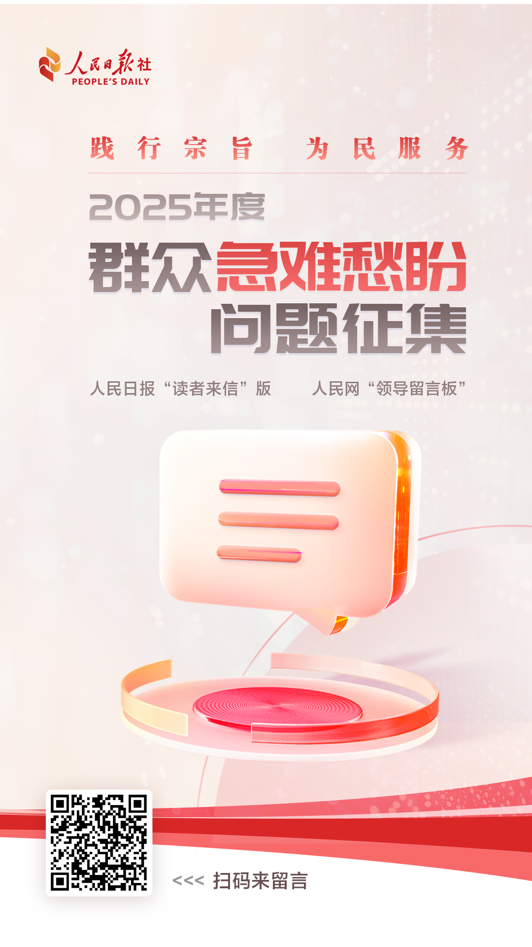 人民網“領導留言板”面向廣大群眾持續開展急難愁盼問題征集,推動多方聯動,把老百姓身邊的大事小事解決好。您有哪些困擾亟待解決,歡迎掃碼留言。