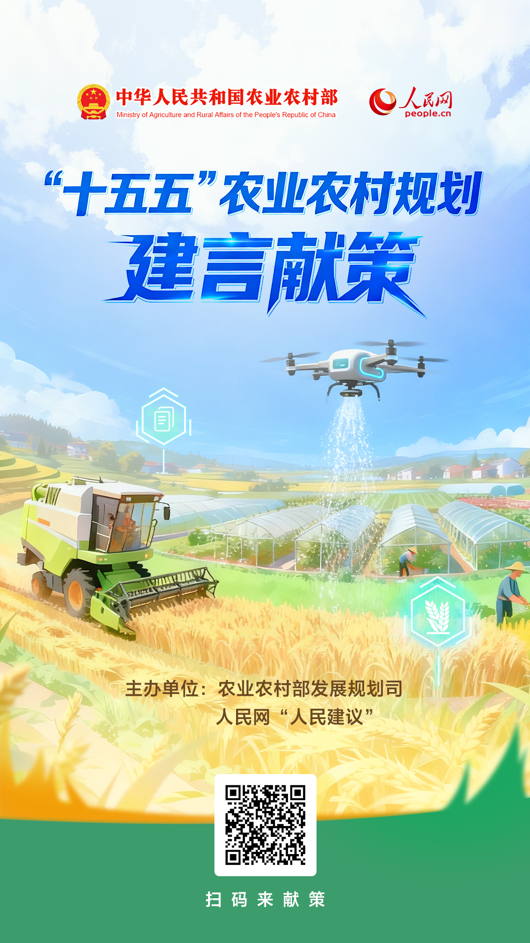 2025年是“十四五”規劃收官之年,也是“十五五”規劃謀篇布局之年。為廣泛傾聽民聲、匯集民智、凝聚共識,科學編制“十五五”農業農村規劃,加快推進農業農村現代化,9月24日起至10月31日,農業農村部發展規劃司通過人民網“人民建議”推出“‘十五五’農業農村規劃建言獻策”網絡意見征求活動(點擊參與),誠邀社會各界為“三農”工作添磚加瓦。